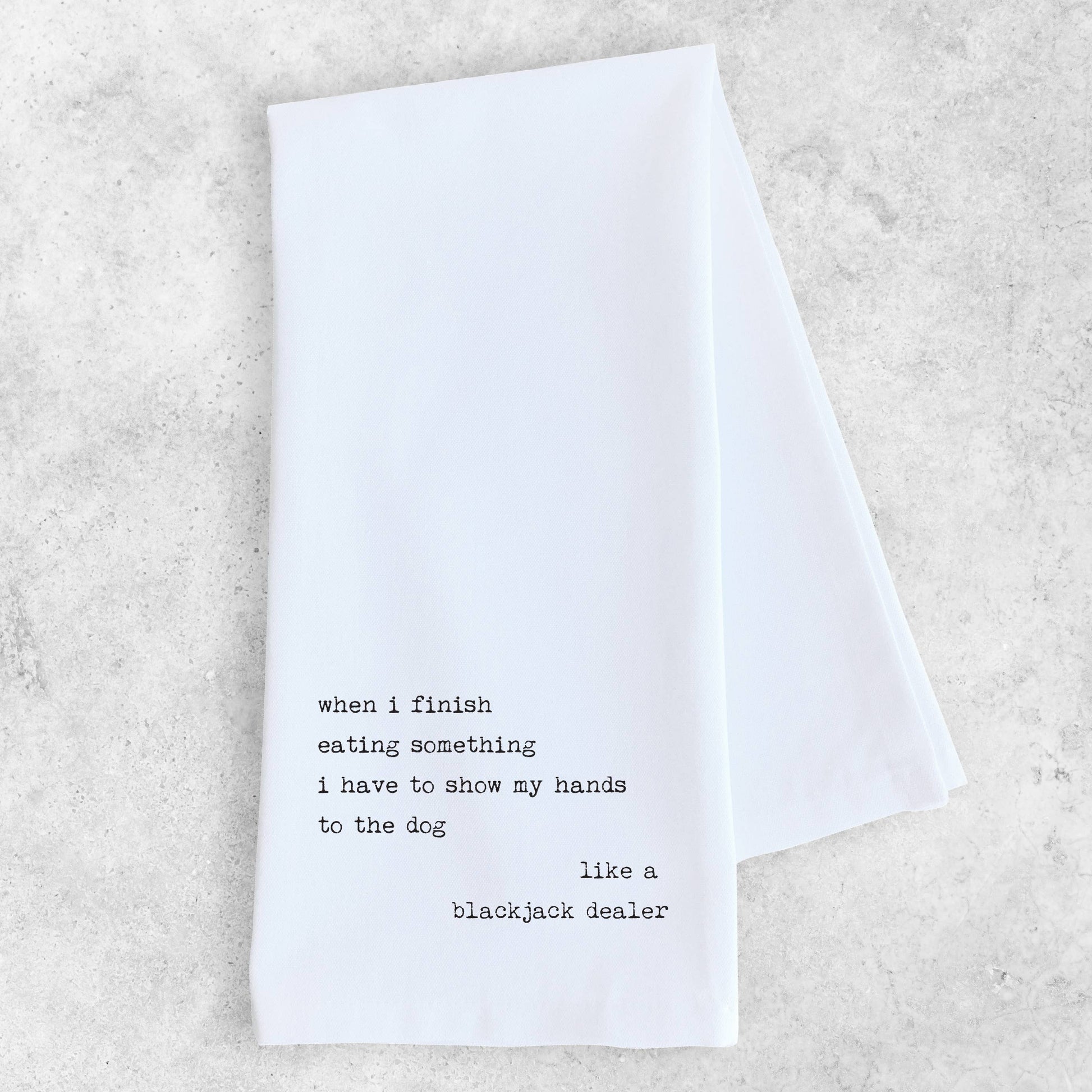 White with black text that highlights any decor - Machine washable and fade resistant - Individually wrapped in a minimalist band with towel name on it for easy display and the perfect gift! *(Packaging example for Mr. Rogers shown.)