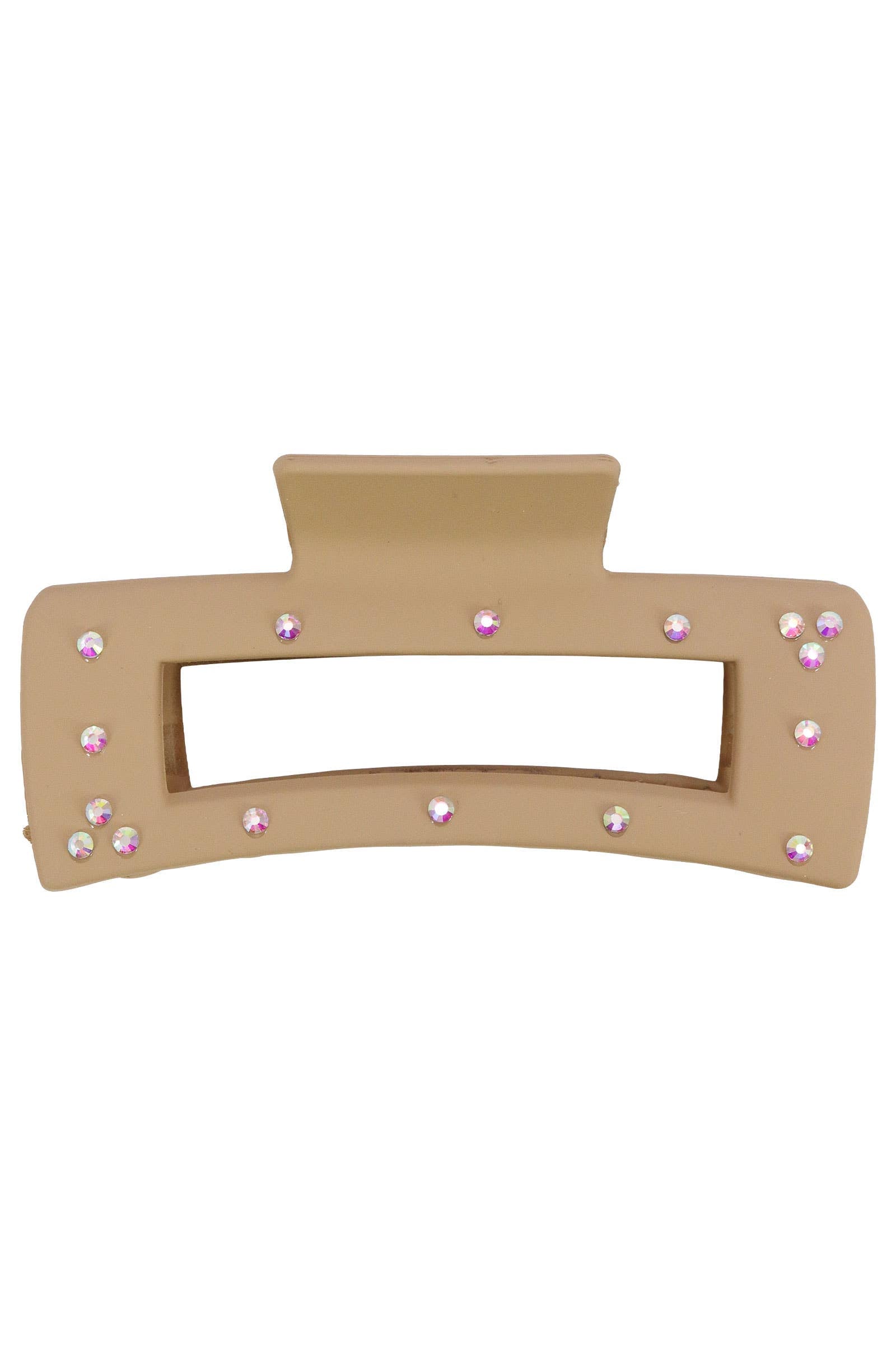 Matte Pastel AB Rhinestone Embellished Hollow-Out Block Plastic Clip Y2K Fashion Hair Claw
