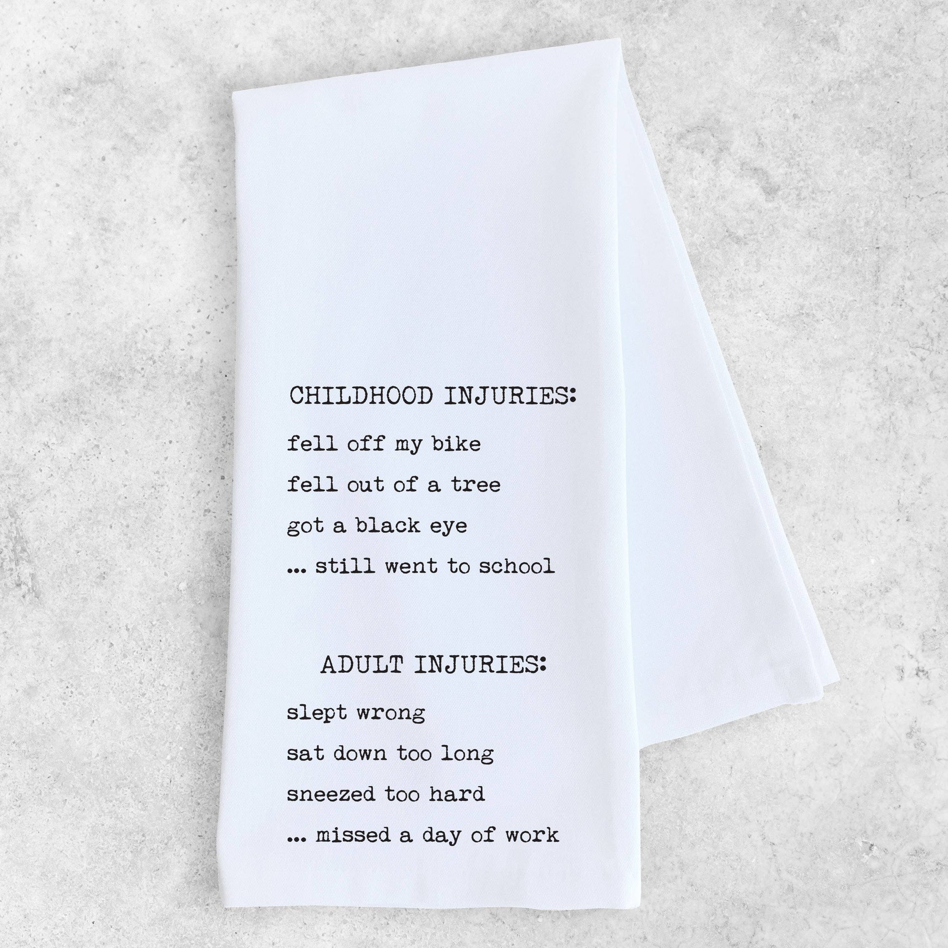 White with black text that highlights any decor - Machine washable and fade resistant - Individually wrapped in a minimalist band with towel name on it for easy display and the perfect gift! *(Packaging example for Mr. Rogers shown.)