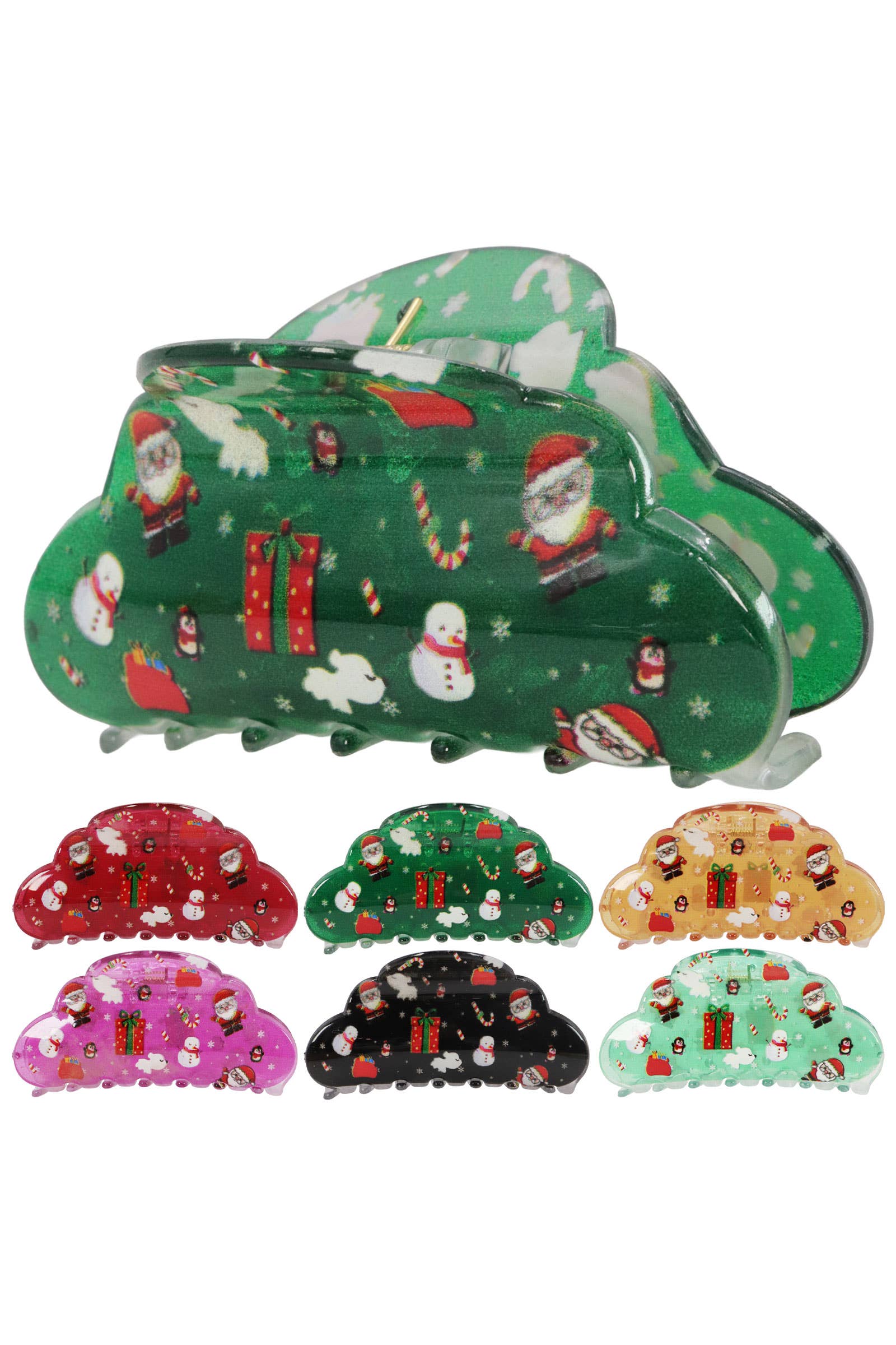 Christmas Itty Bitty Ornament Print Glossy Clear Cloud Shaped Plastic Clip Y2K Fashion Hair Claw