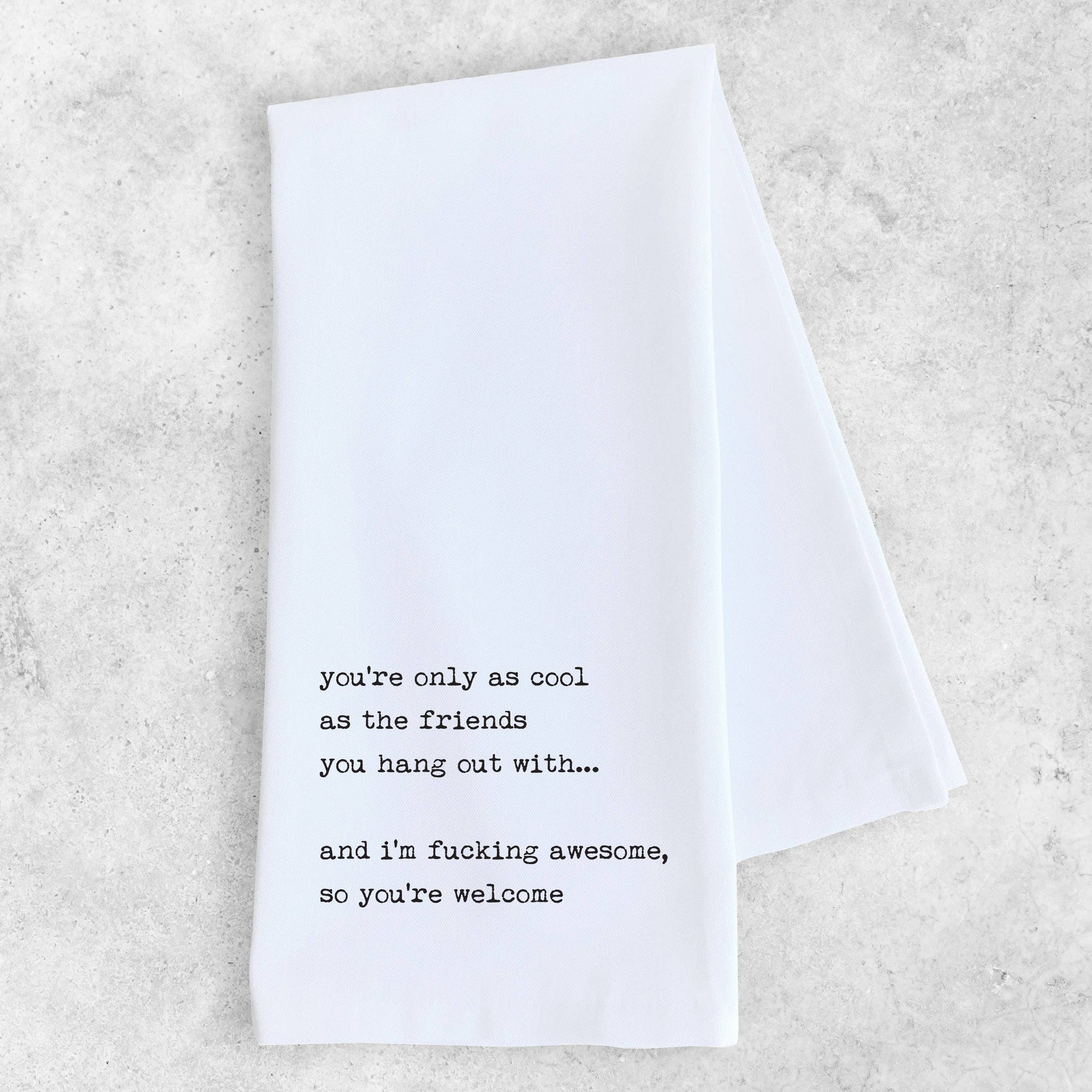 White with black text that highlights any decor - Machine washable and fade resistant - Individually wrapped in a minimalist band with towel name on it for easy display and the perfect gift! *(Packaging example for Mr. Rogers shown.)