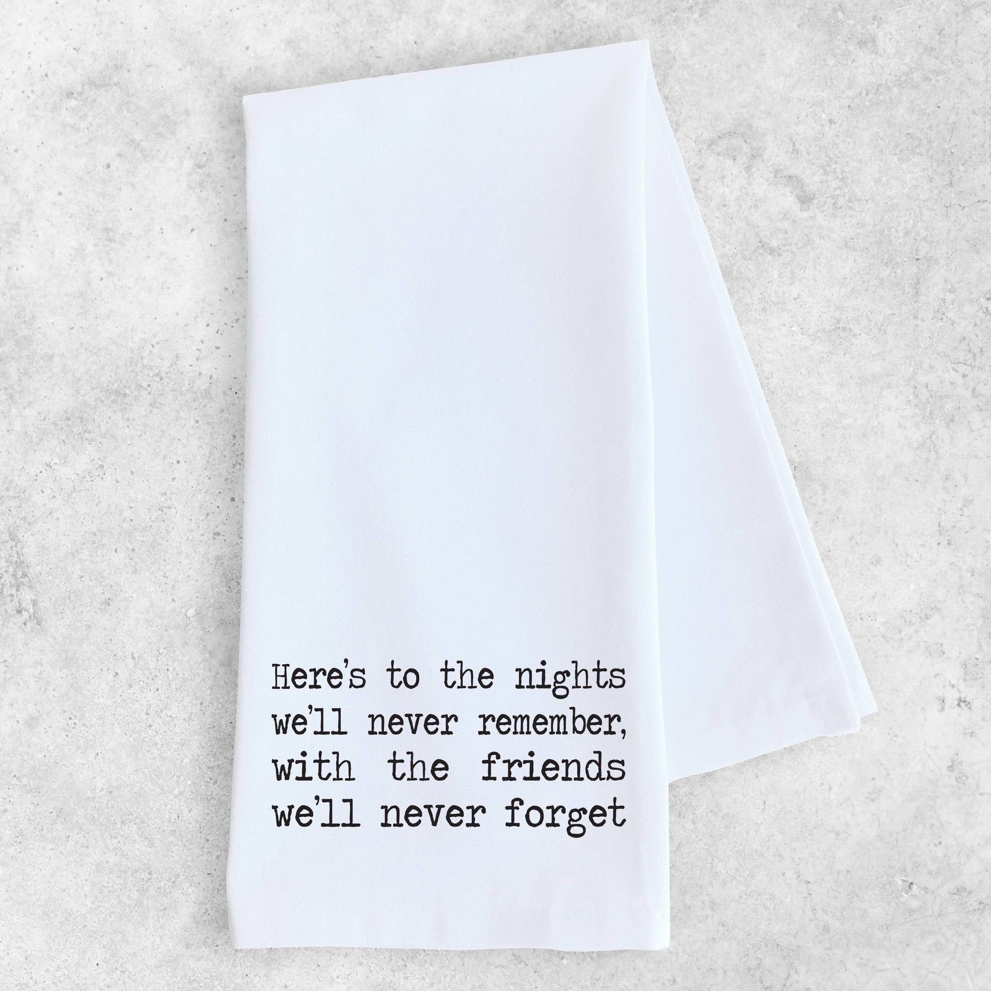 White with black text that highlights any decor - Machine washable and fade resistant - Individually wrapped in a minimalist band with towel name on it for easy display and the perfect gift! *(Packaging example for Mr. Rogers shown.)