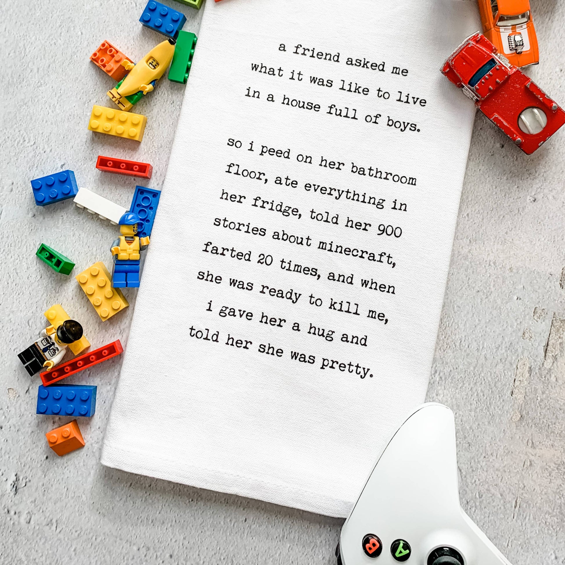 White with black text that highlights any decor - Machine washable and fade resistant - Individually wrapped in a minimalist band with towel name on it for easy display and the perfect gift! *(Packaging example for Mr. Rogers shown.)