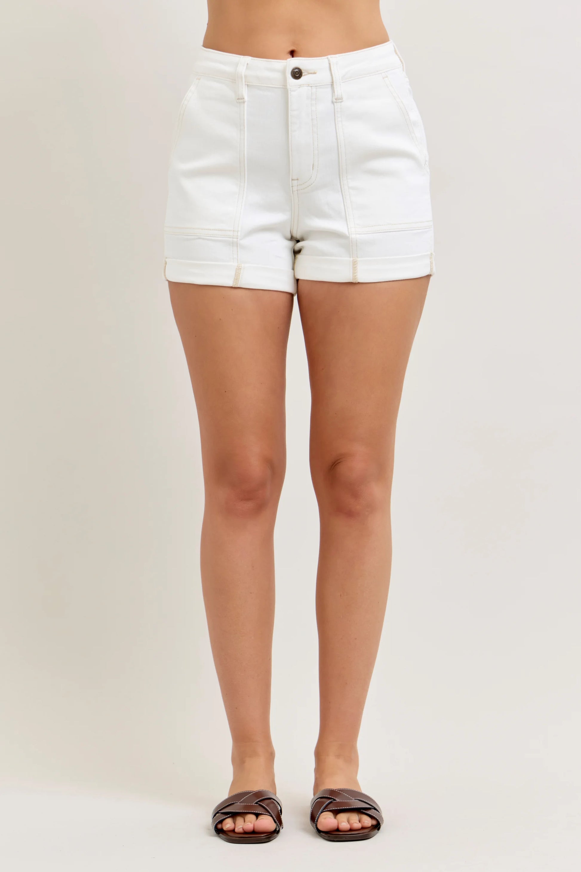 Judy Blue 150376 High Waist Aurora Weekender Shorts with Double Rolled Cuff