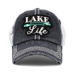 Vintage Distressed "Lake Life" Embroidered Baseball Cap.