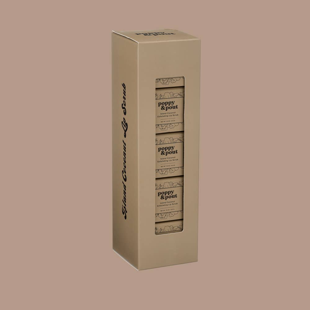 Our exfoliating lip scrub is the perfect way to prep your pout for smooth, hydrated lip balm application. We use a clean combination of natural ingredients to help clean and gently exfoliate your lips. Our Island Coconut Lip Scrub smells just like those summer months spent on the beach!
