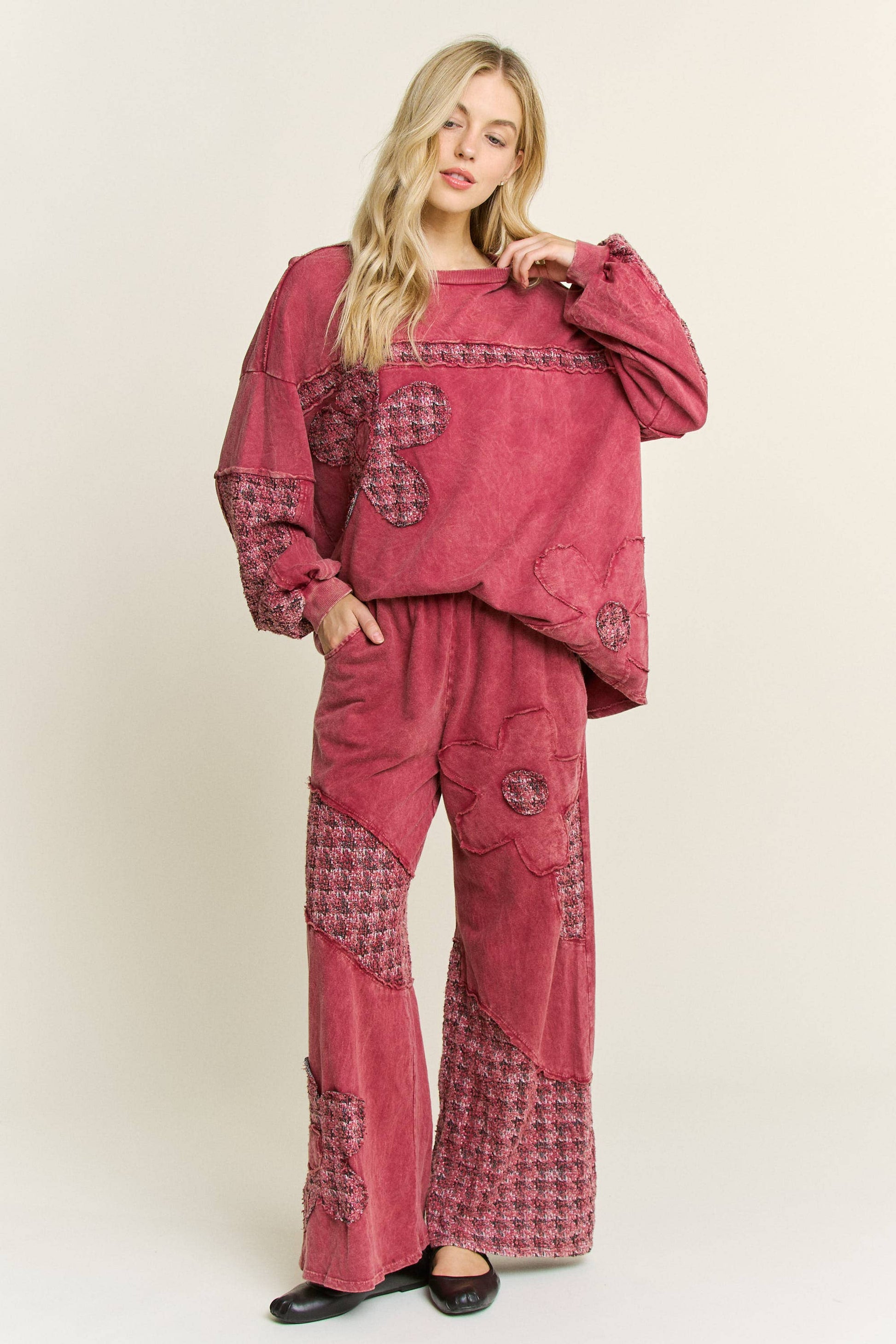 Bring a little sunshine to your style with these Mineral Washed Tweed Daisy Patch Wide-Leg Pants. The soft mineral-washed fabric gives a vintage, lived-in feel, while playful daisy patch accents add the perfect touch of charm. Wide-leg comfort meets laid-back boho vibes—making these pants a true statement piece you’ll love to wear.