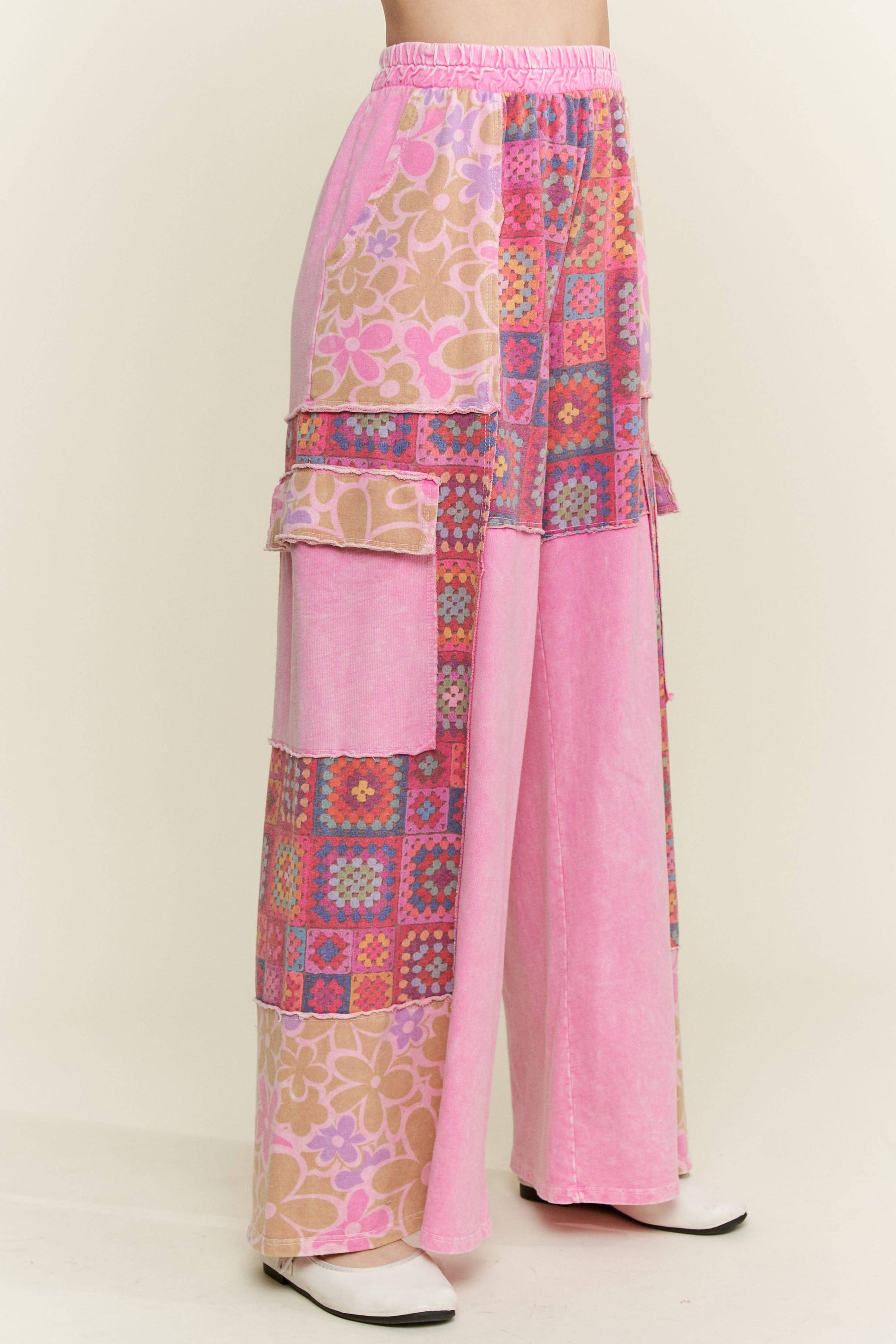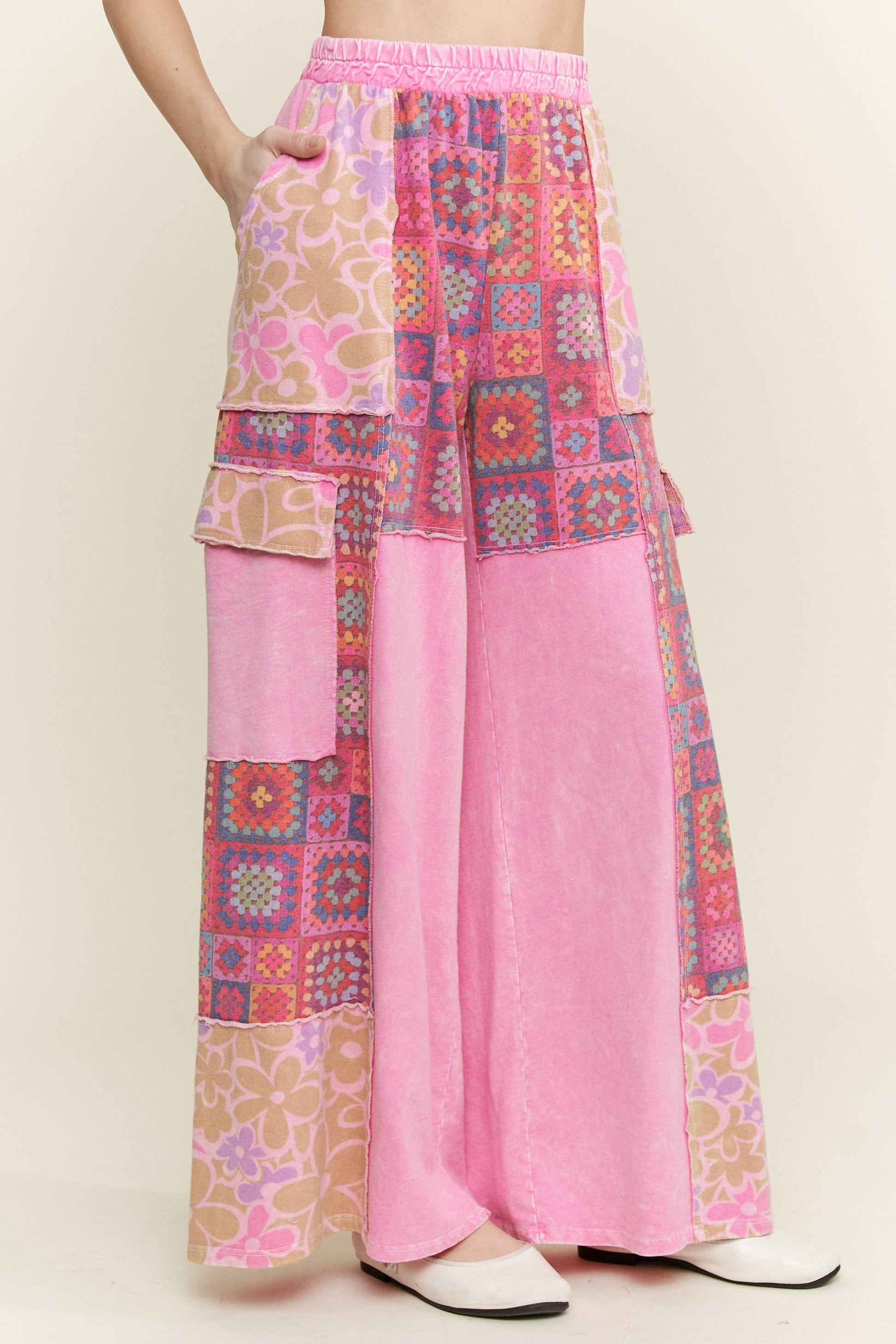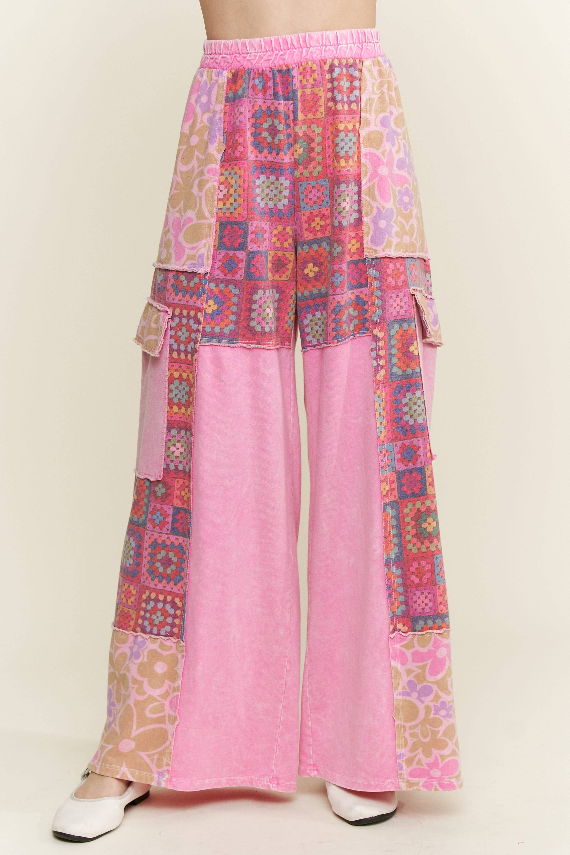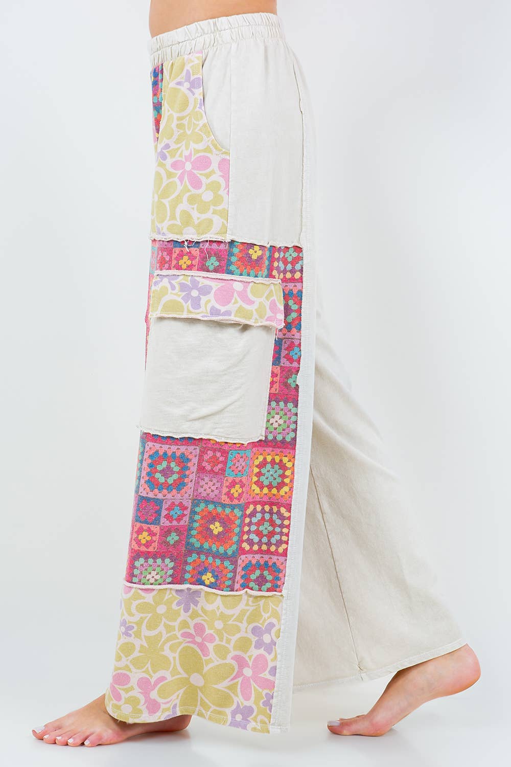 Mineral Wash Crochet Floral Printed Pants – HP5758