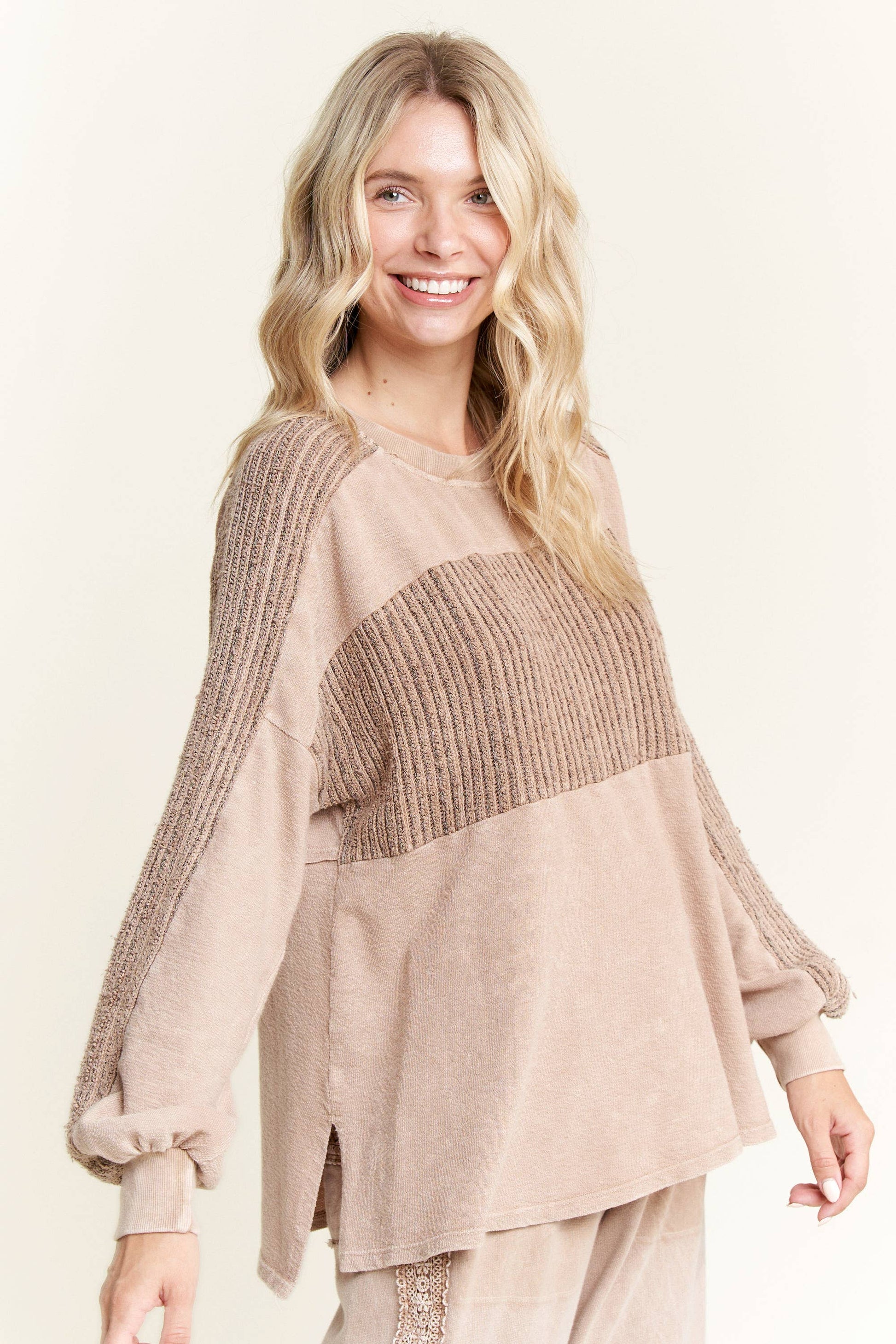 Mineral Wash Knitted Low Gauge Rib Melange top HT5959
