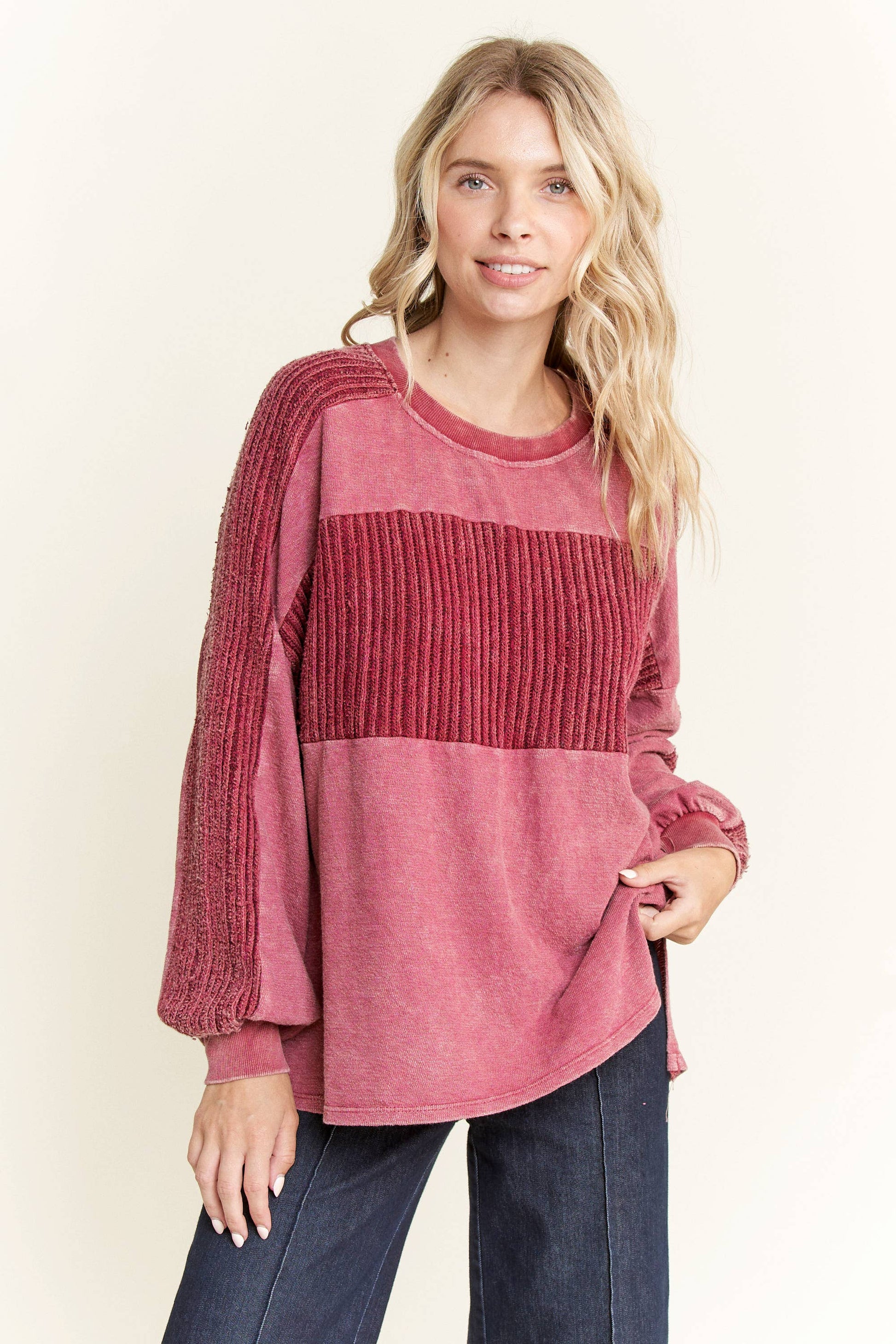 Wrap yourself in cozy texture with this Mineral Wash Knitted Low Gauge Rib Melange Sweater Top. Designed with a relaxed silhouette and mineral-washed finish, it delivers that perfect mix of effortless style and soft comfort.