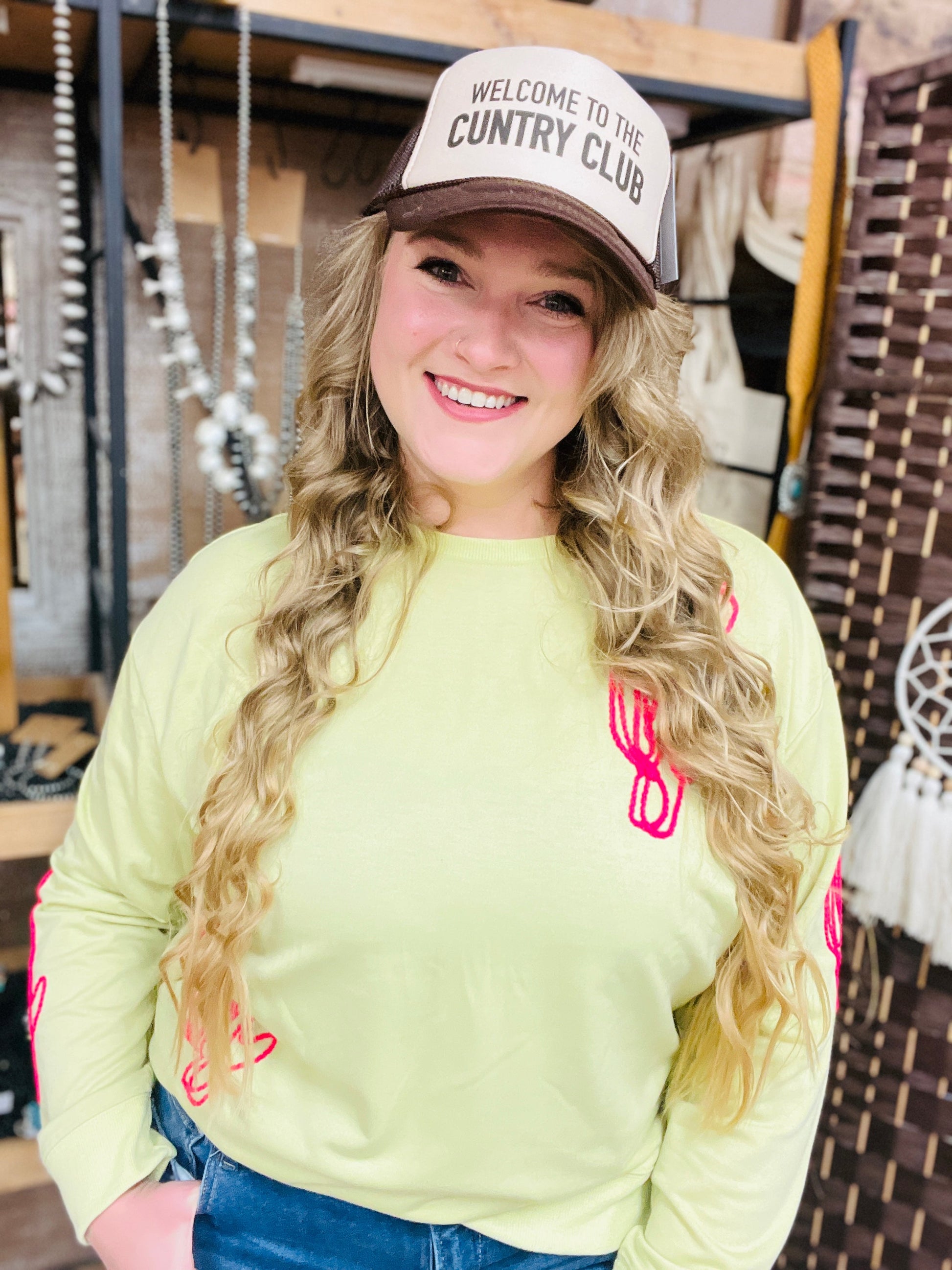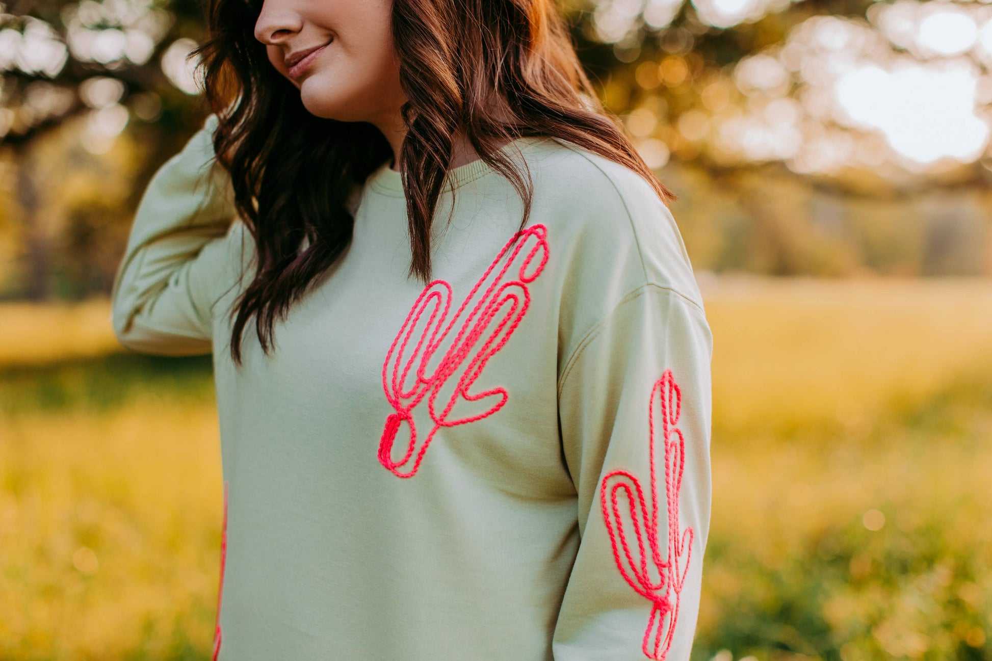 Effortlessly bold and undeniably cozy, the Cool As A Cactus Sweatshirt brings a laid-back Western vibe with a boutique twist. Featuring cactus line embroidery across a refreshing green backdrop, this lightweight pullover is your new go-to for transitional layering, weekend wanderings, and desert daydreams.
