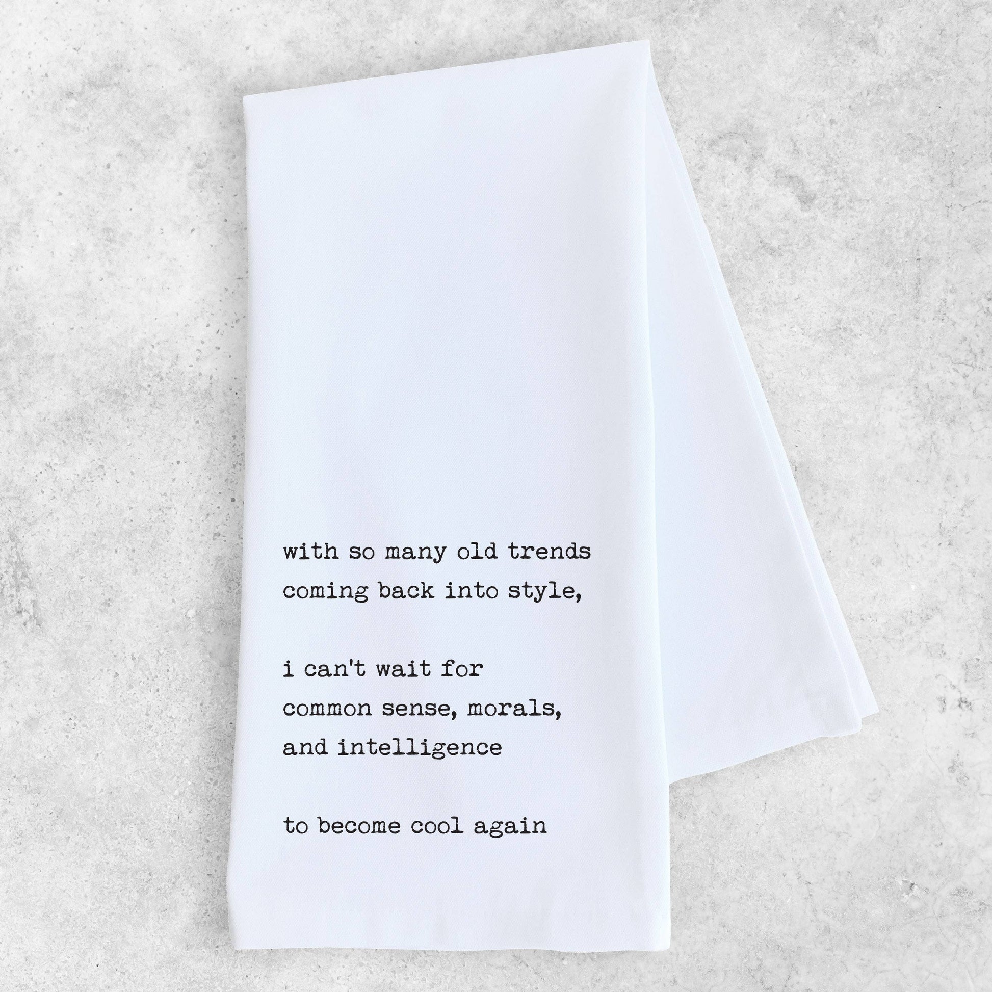 White with black text that highlights any decor - Machine washable and fade resistant - Individually wrapped in a minimalist band with towel name on it for easy display and the perfect gift! *(Packaging example for Mr. Rogers shown.)